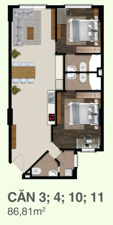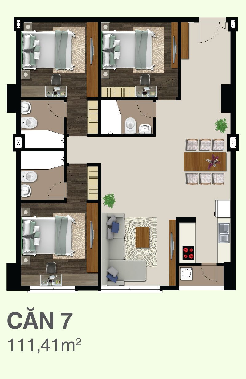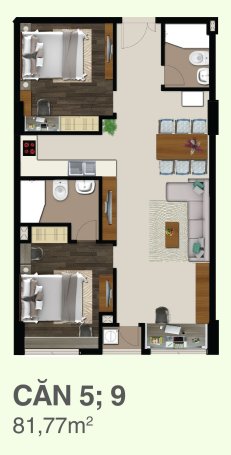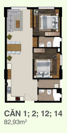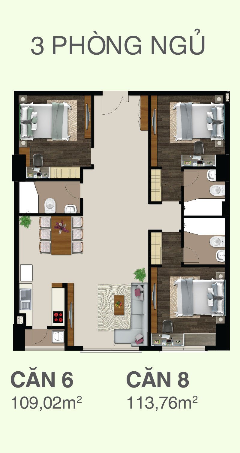 Căn hộ CitiZen Trung Sơn được thiết kế từ 81,77m2 – 165,25m2, với 2 – 3 phòng ngủ.