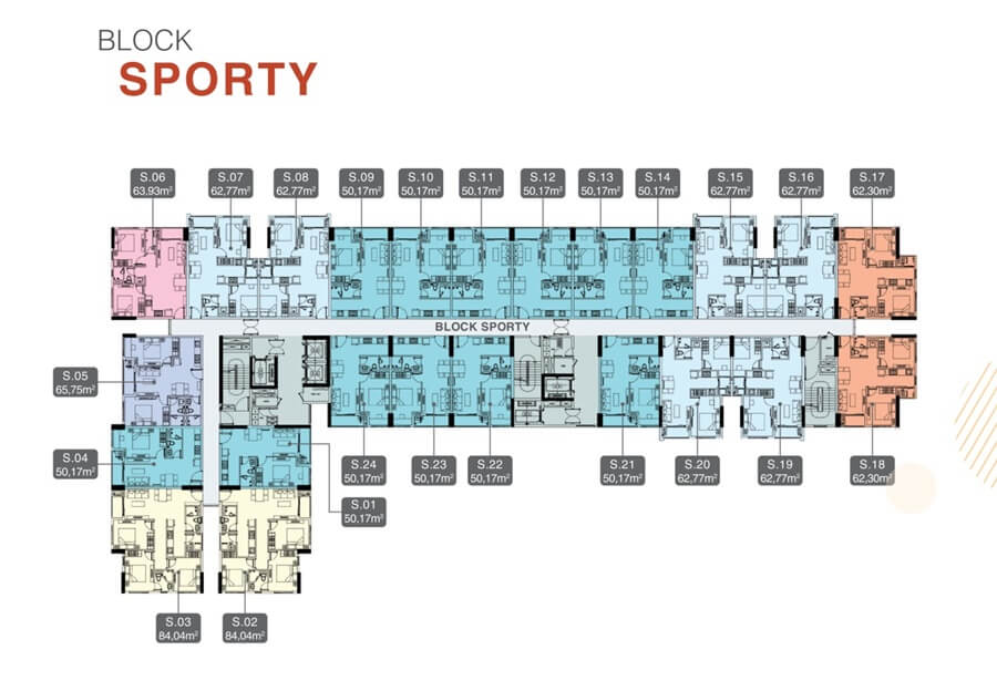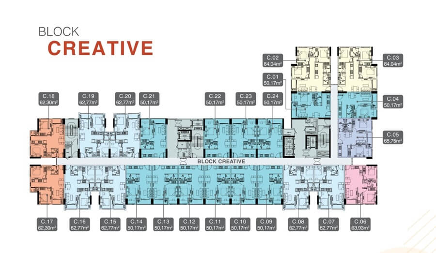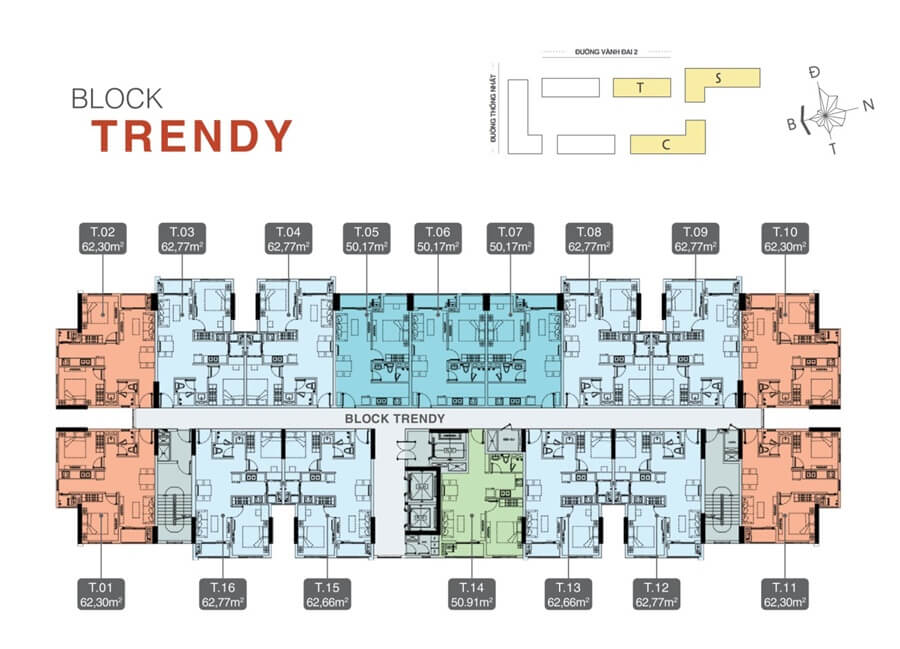 - Cơ cấu căn hộ: Các căn hộ được thiết kế từ 50m2 – 84m2 với (1 – 3 phòng ngủ)
