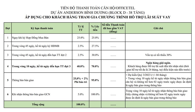 + Thanh toán: Ký hợp đồng mua bán 30% giá trị căn hộ chờ đến ngày nhận nhà.