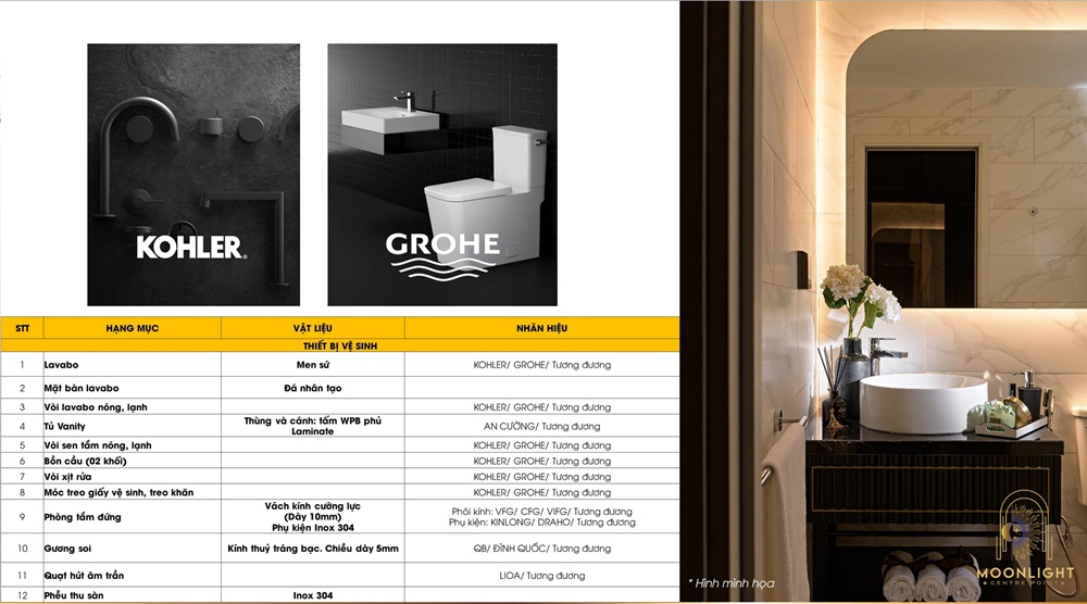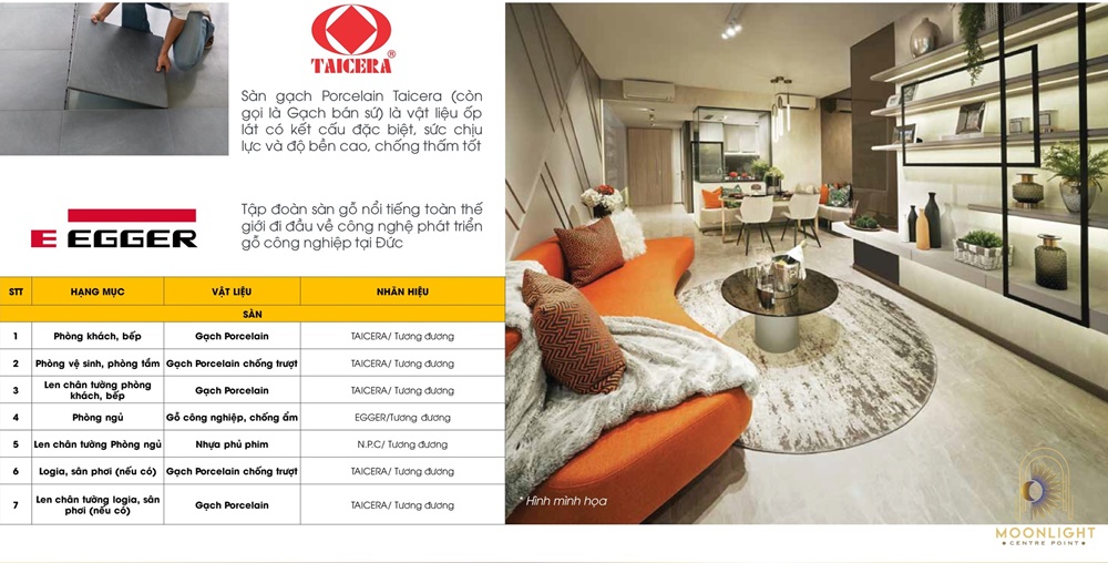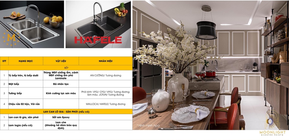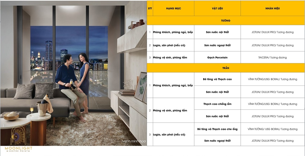 Danh mục nội thất bàn giao Moonlight Centre Point Hưng Thịnh
