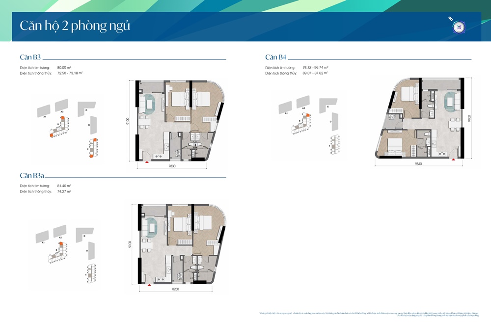 | Diện tích căn hộ: | 45-90m2 từ 1-2-3 phòng ngủ |