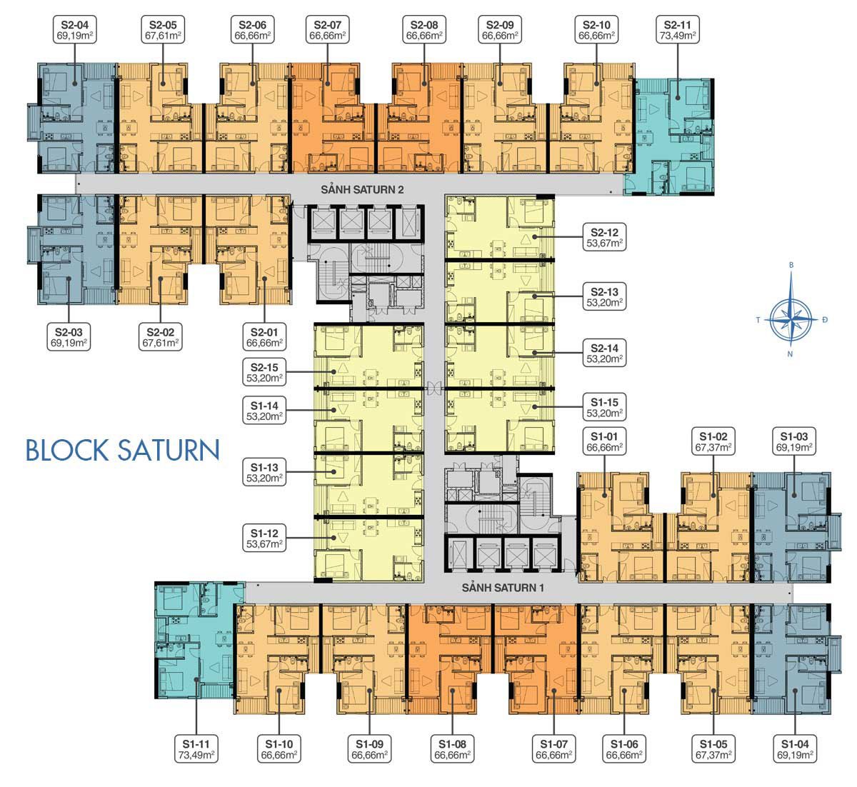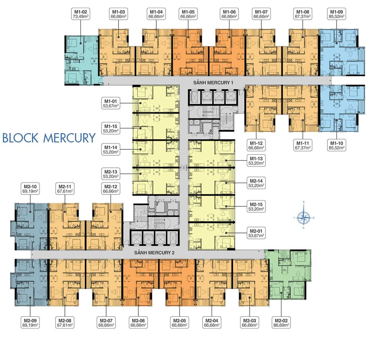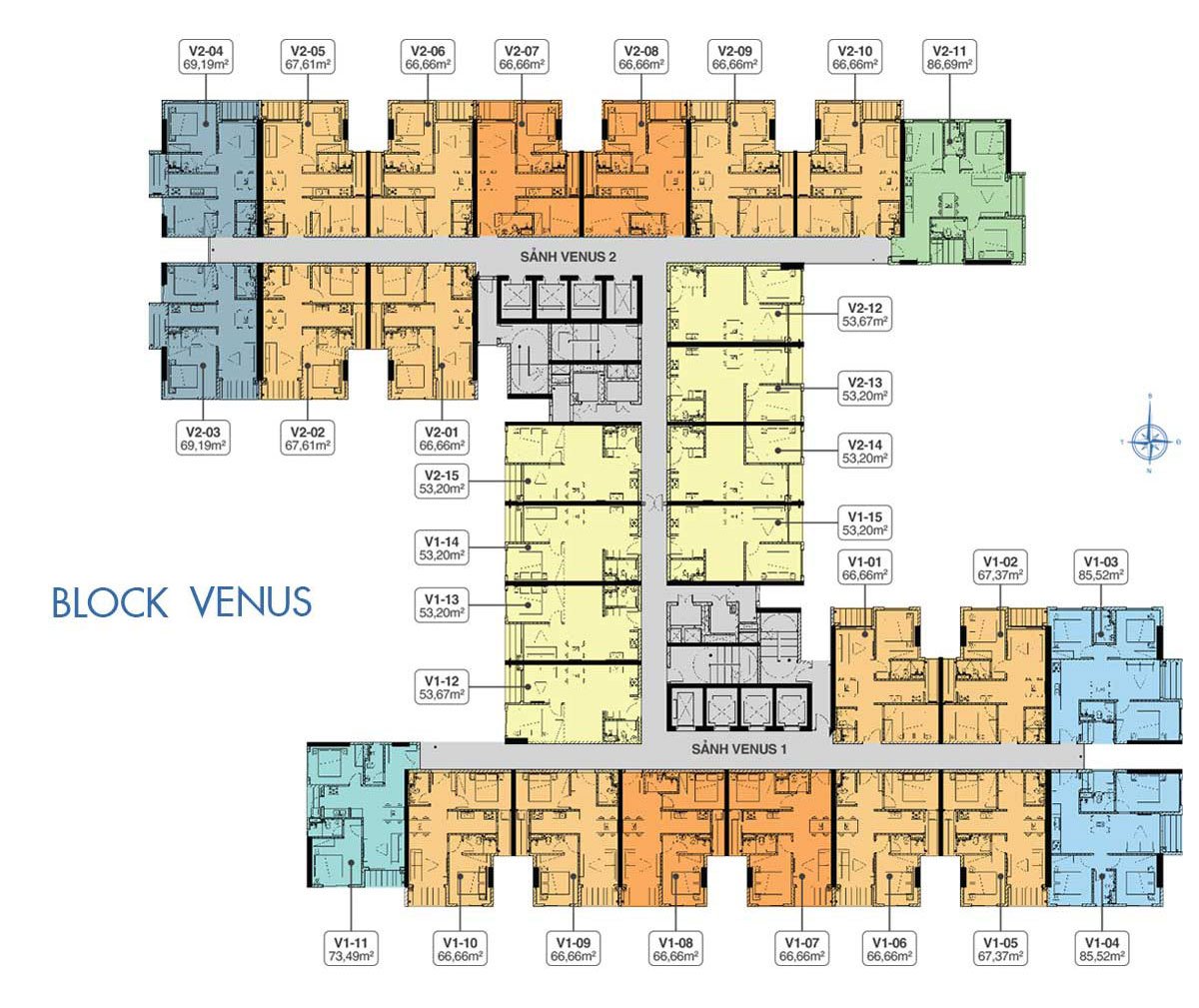 - Số Căn Hộ: 3.580 căn (thiết kế 1PN, 2PN, 3PN diện tích từ (53,2 – 86,69m2)