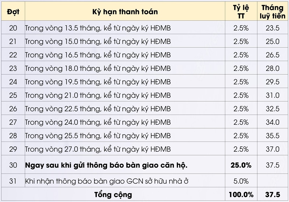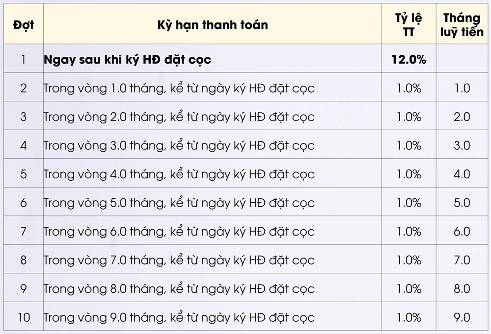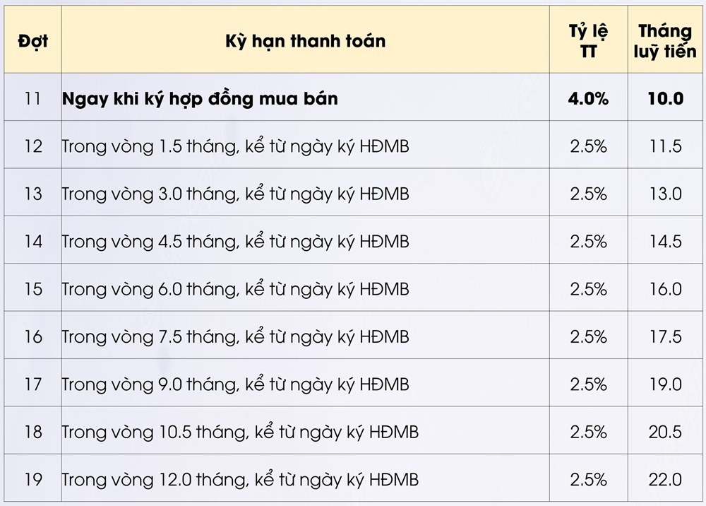 - Thanh toán vượt tiến độ chiết khấu với lãi suất 24%/năm