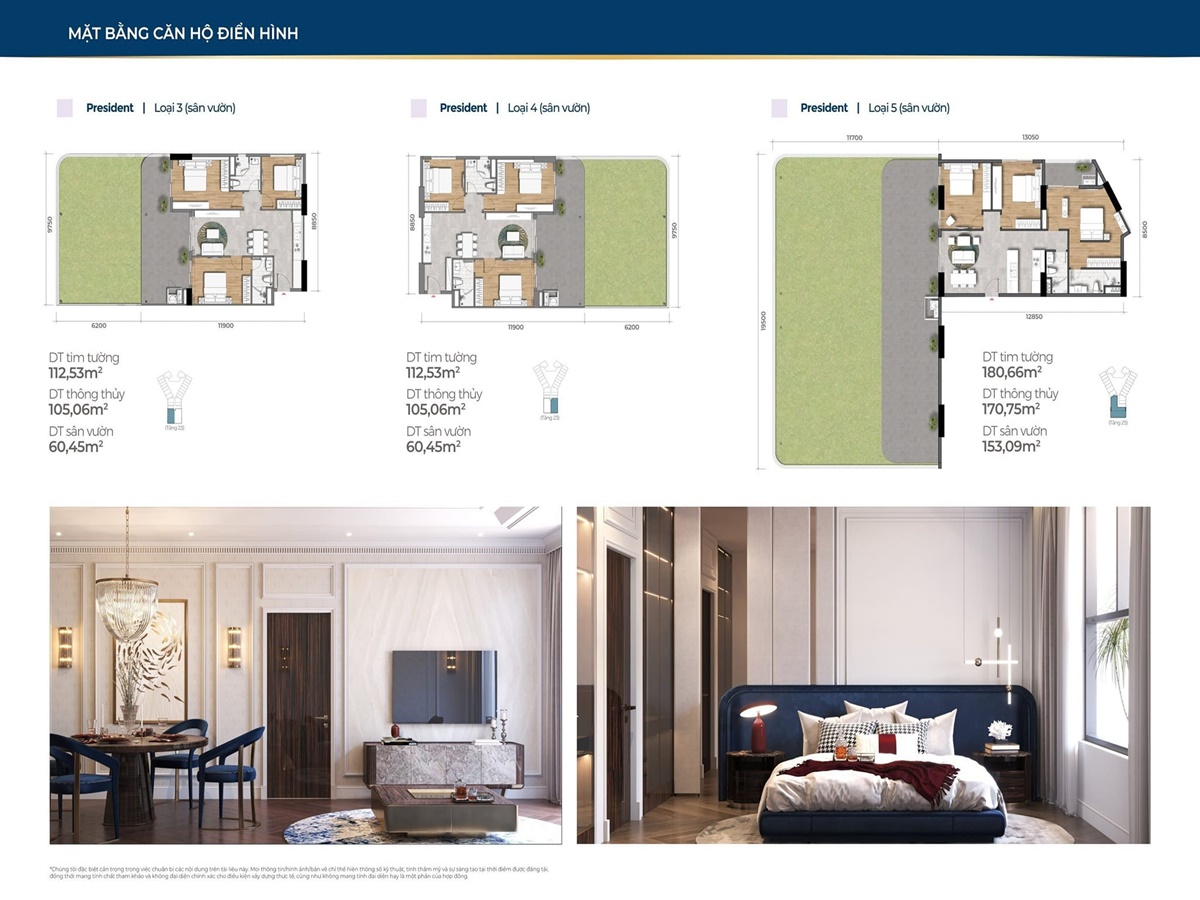 – Giá bán căn hộ Sân vườn (112m2 và 180m2): 4,8 tỷ – 7,7 tỷ