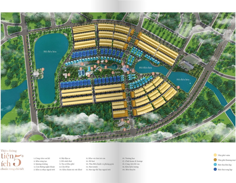 - Loại hình: Nhà phố, biệt thự, shophouse, căn hộ cao cấp Tiện ích:Hồ bơi, hồ cảnh quan, công viên cây xanh, khu mua sắm, trung tâm thương mại, siêu thị, văn phòng, bảo vệ 24/24,…