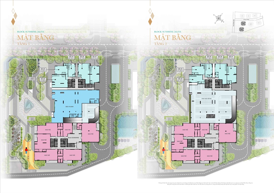 - Tầng hầm: 1 tầng hầm thông giữa các block