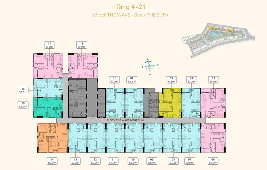 • Quy mô xây dựng: 7 block cao 21 tầng